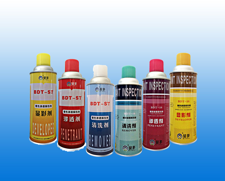 著色滲透探傷劑用于非鐵磁性材料表面缺陷檢測,產(chǎn)品顯像迅速,清晰,線條細(xì),不暈染。廣泛應(yīng)用于化工、造船、發(fā)電、航空、機(jī)械、汽車、冶金、石油、鐵路、受壓容器等部門的探傷檢測。